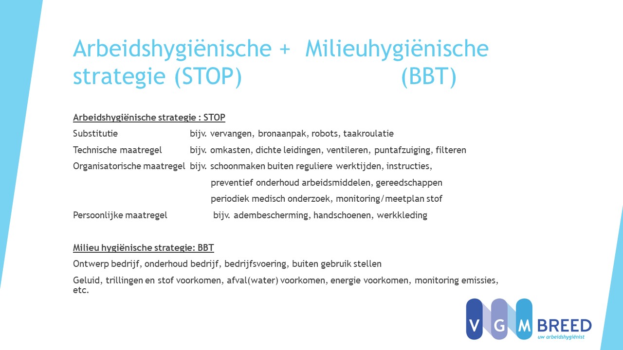 VGM Breed helpt industriële bedrijven bij het afleiden van grenswaarden. Dit is nodig omdat niet voor alle stoffen wettelijke grenswaarden zijn vastgelegd in de Arbowet.