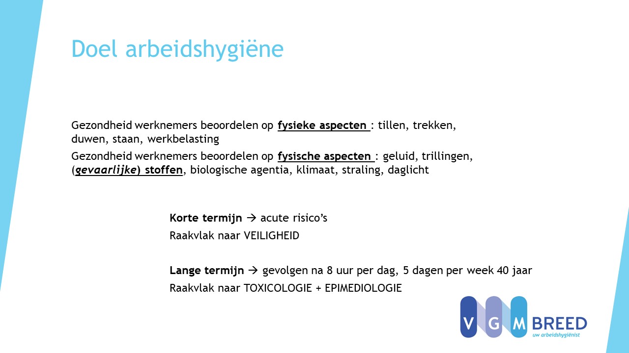 VGM Breed helpt industriële bedrijven bij het afleiden van grenswaarden. Dit is nodig omdat niet voor alle stoffen wettelijke grenswaarden zijn vastgelegd in de Arbowet.